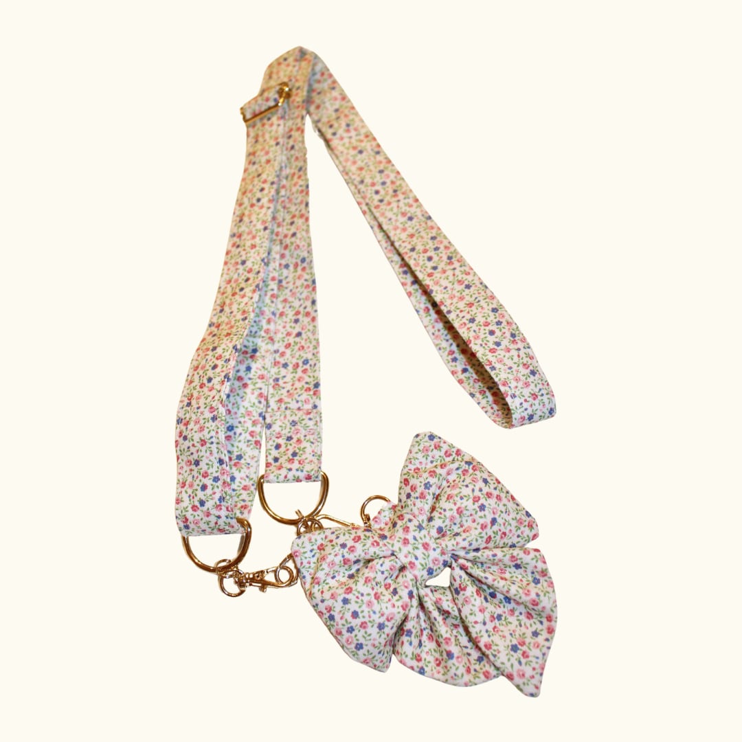 A handmade shoulder strap crafted from 100% U.S. cotton fabric.