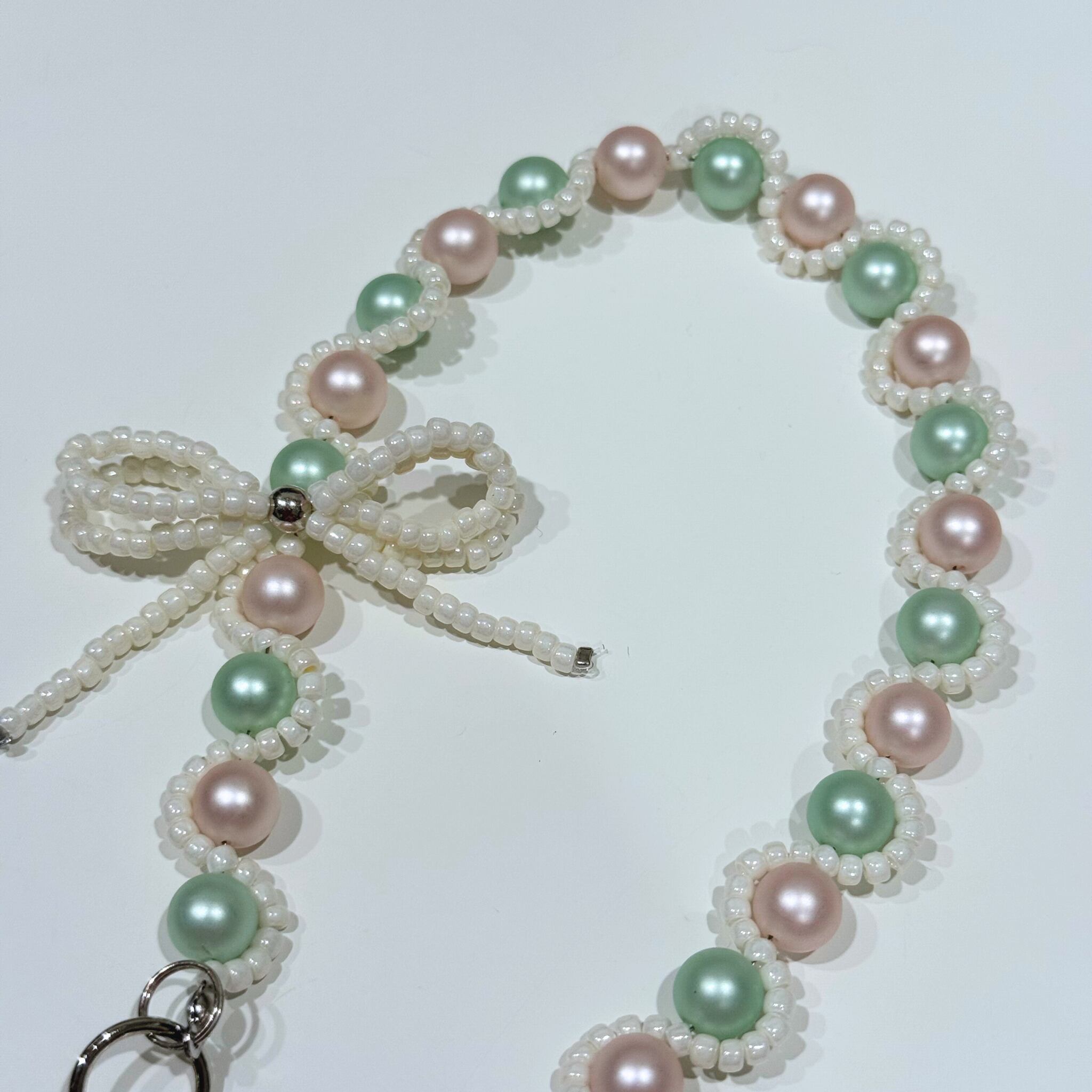 ▫︎ Materials: Seed beads, faux pearls, nylon-coated wire, clear nylon thread