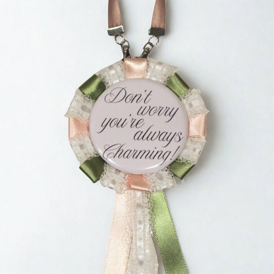 Rosette Bag Charm "DON'T WORRY YOU'RE ALWAYS CHARMING!"