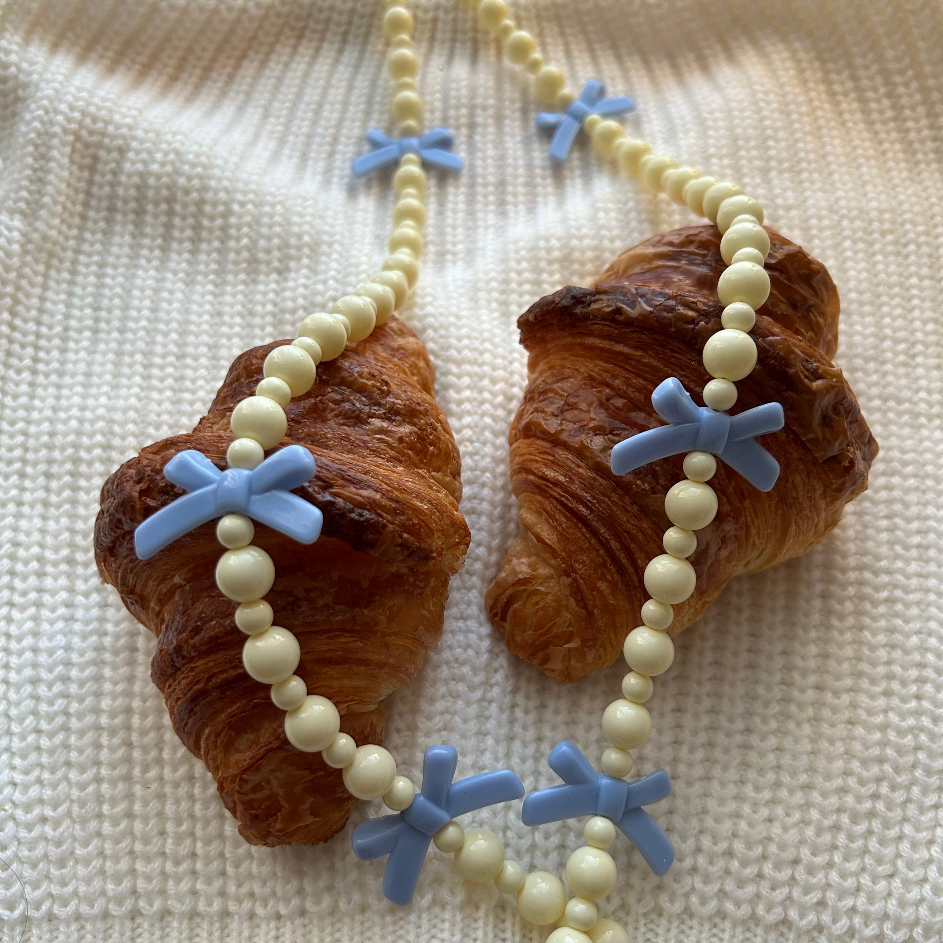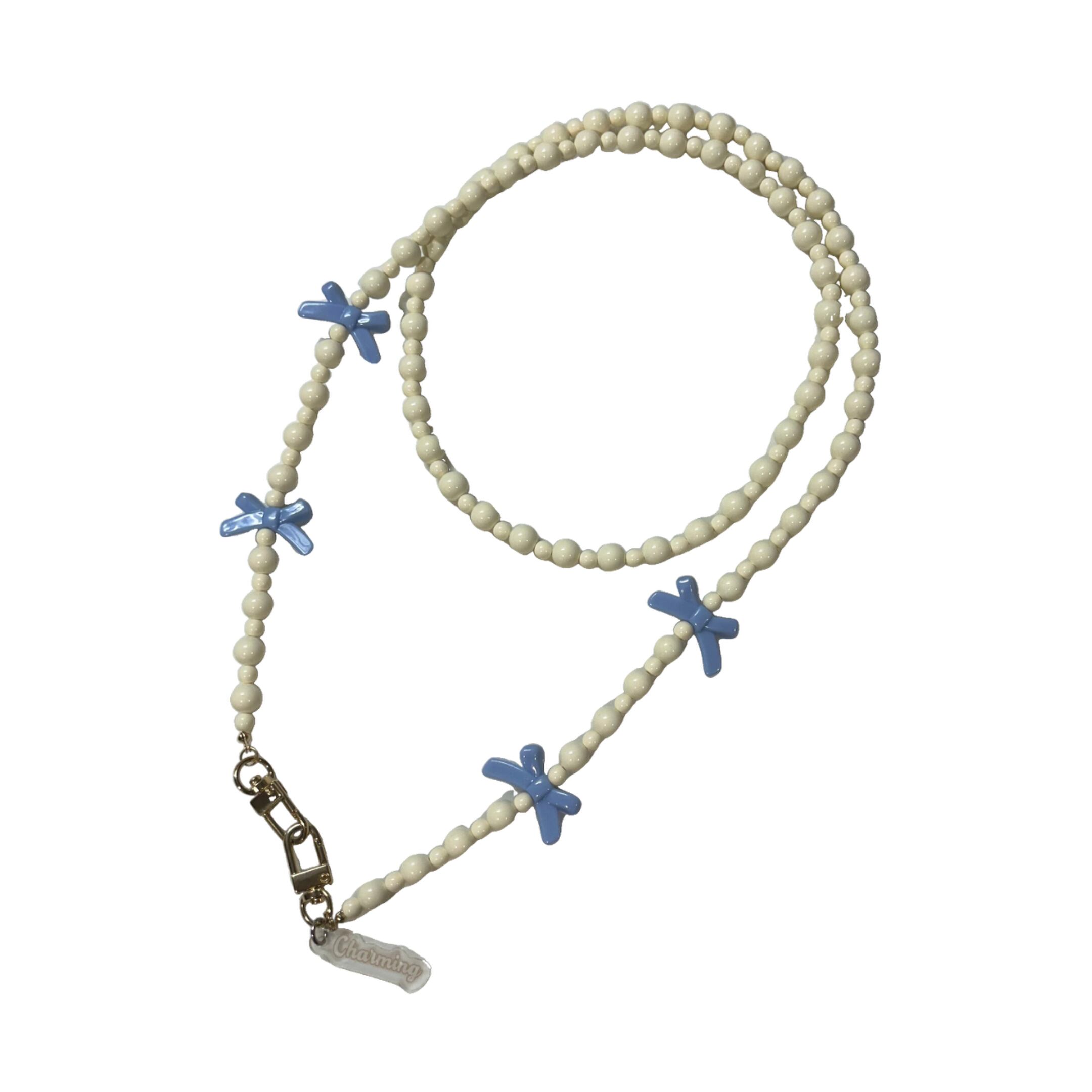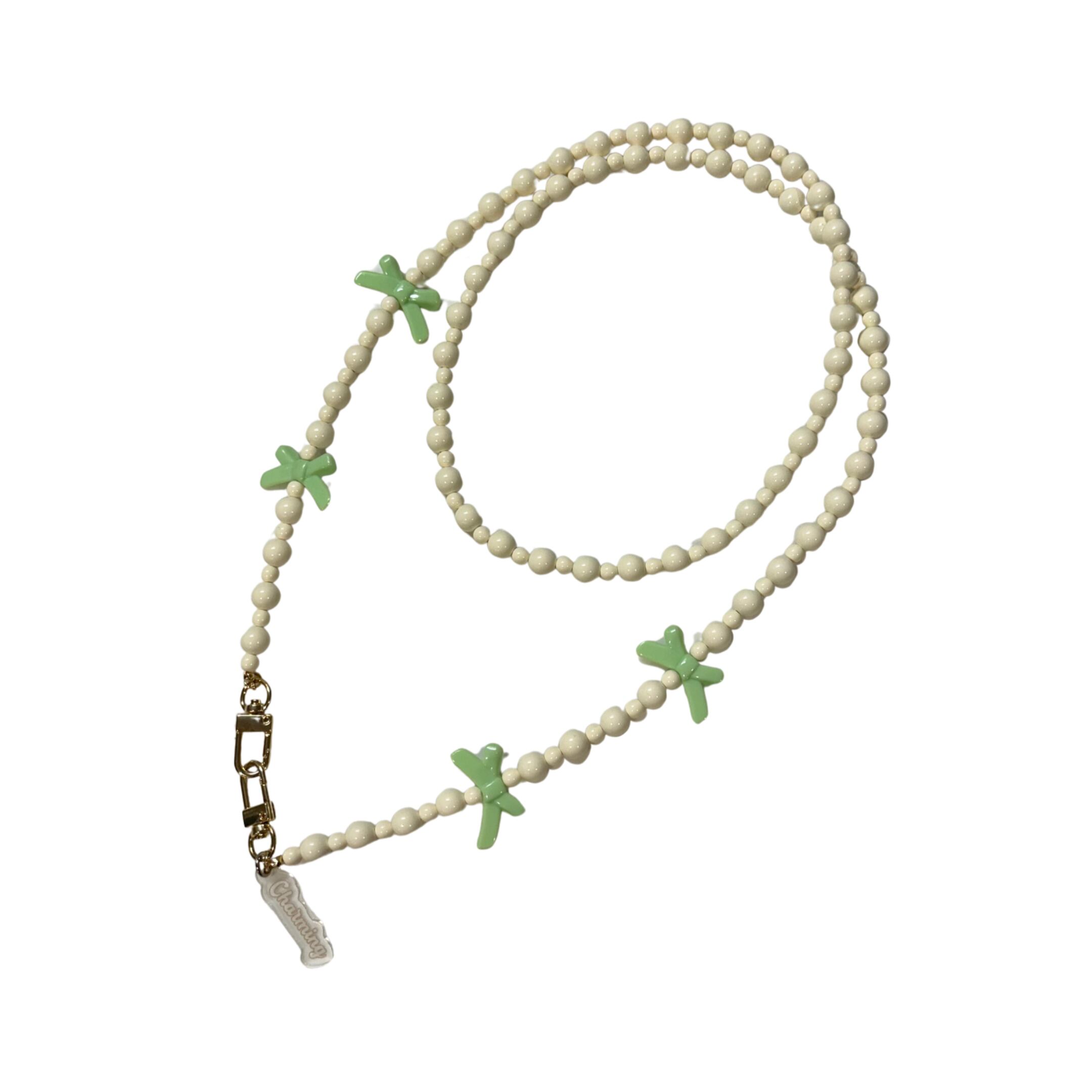 Delicately crafted with premium Japanese ivory beads and finished with a sweet ribbon motif, this shoulder strap blends playful charm with refined elegance — perfect for adding a touch of sophistication to your look.