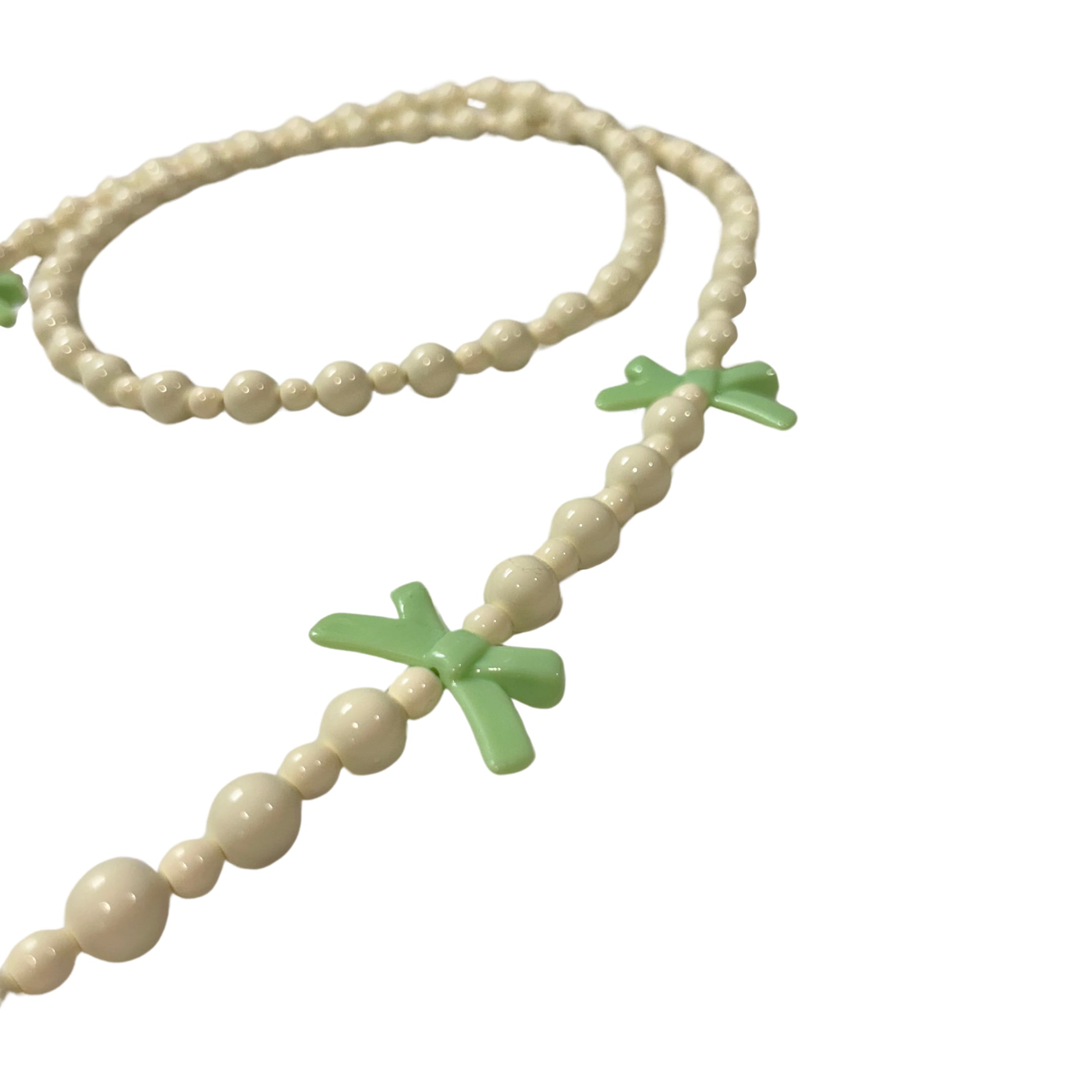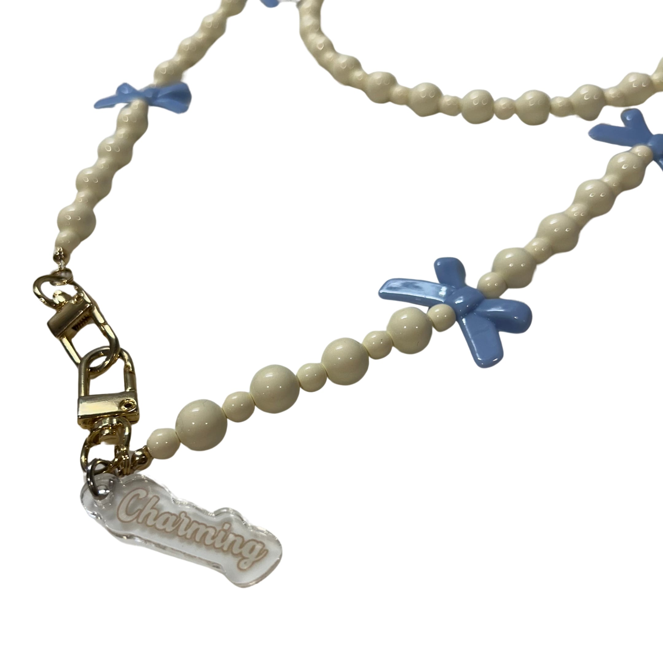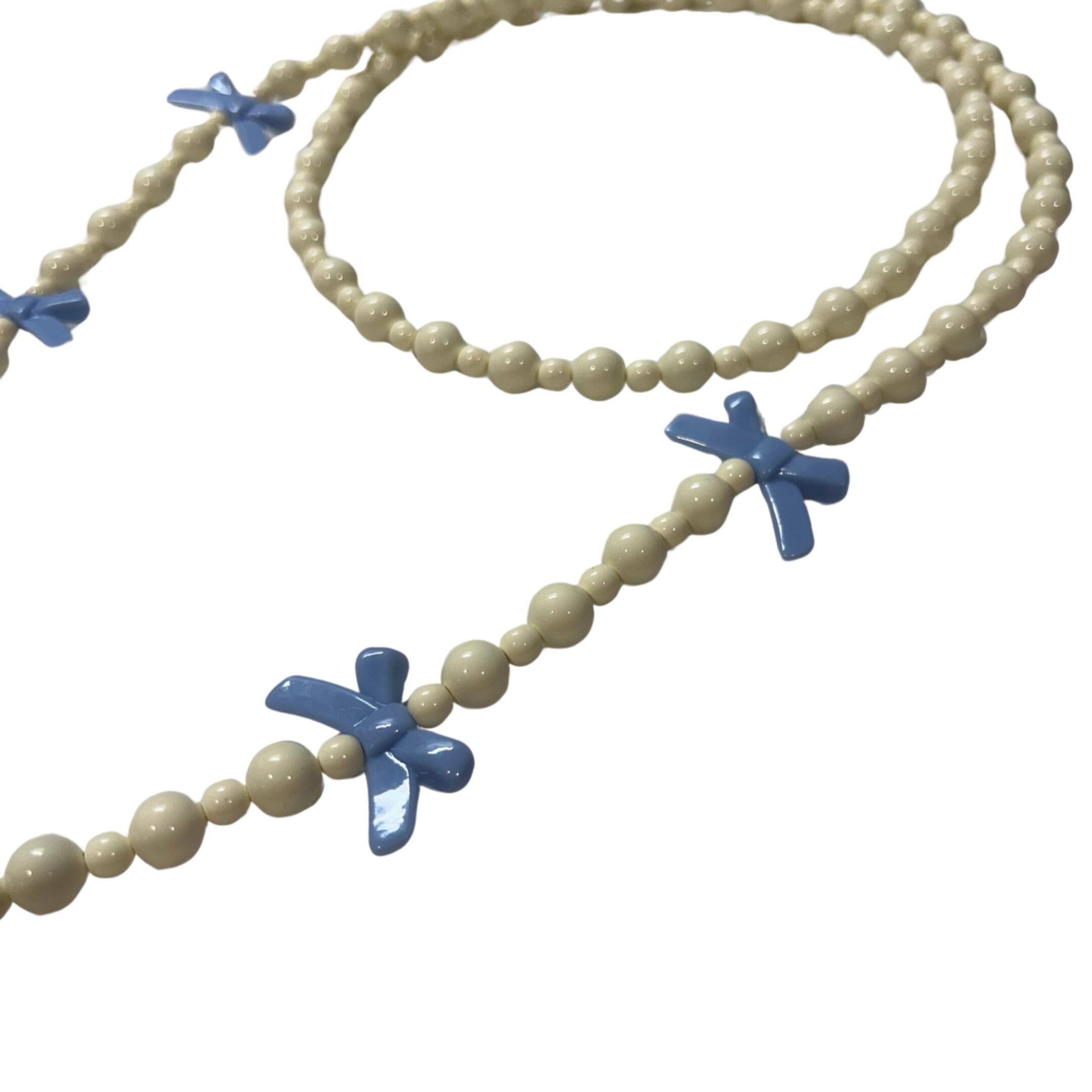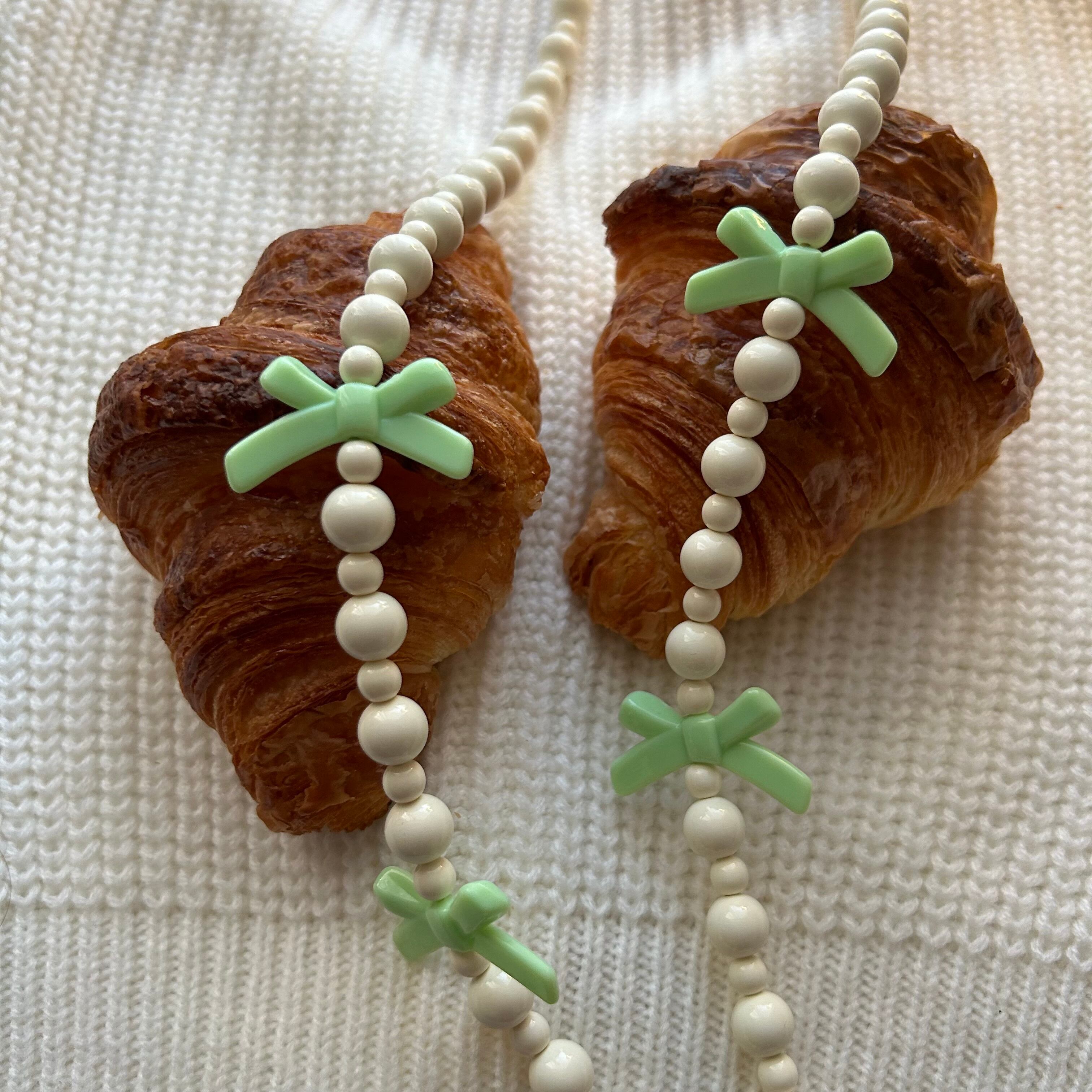 Delicately crafted with premium Japanese ivory beads and finished with a sweet ribbon motif, this shoulder strap blends playful charm with refined elegance — perfect for adding a touch of sophistication to your look.